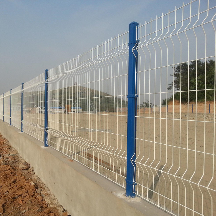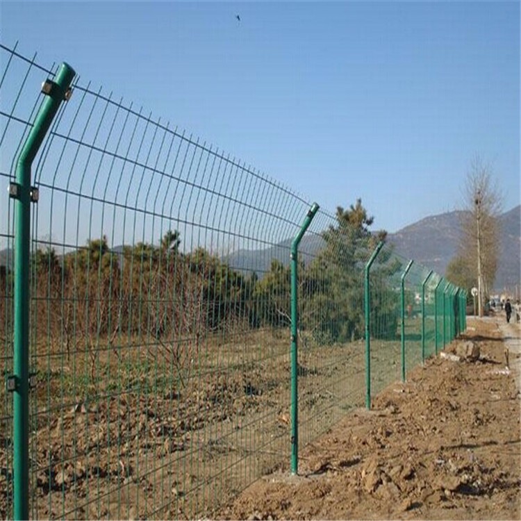 3、三角折彎護(hù)欄網(wǎng)除了具有前倆邊的特點(diǎn)以外,在結(jié)構(gòu)上是雙邊護(hù)欄網(wǎng)的基礎(chǔ)上增加幾道V型加強(qiáng)折彎(三角折彎)最特別的就是其顏色多樣,美觀耐看。因?yàn)槠涑R?jiàn)搭配立柱是桃形柱,桃形柱表面處理多為靜電噴涂,靜電噴涂顏色比較多,紅色,黃色,綠色,灰色等等,與眾不同。